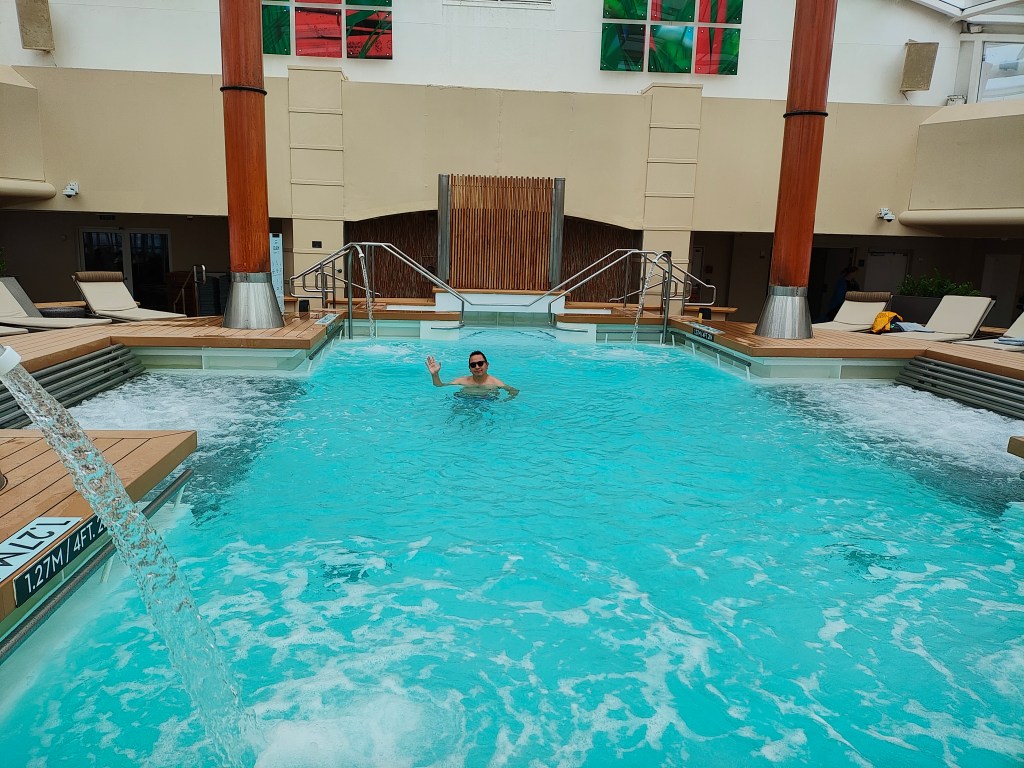 Mon, Sept 21 – Day 14 – Day at Sea. The weather was nice today, amazingly, for the first time. We hung out by the pool most of the day (the real pool, not the air-conditioned one) – our one last day before packing and going to bed early. Ready to go home!